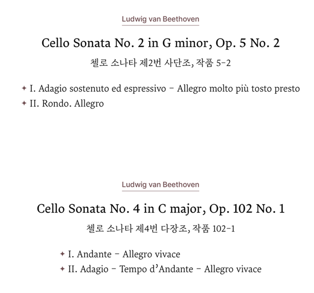 이번 공연은 루트비히 판 베토벤의 첼로 소나타 두 곡으로 구성된 올 베토벤 프로그램입니다.